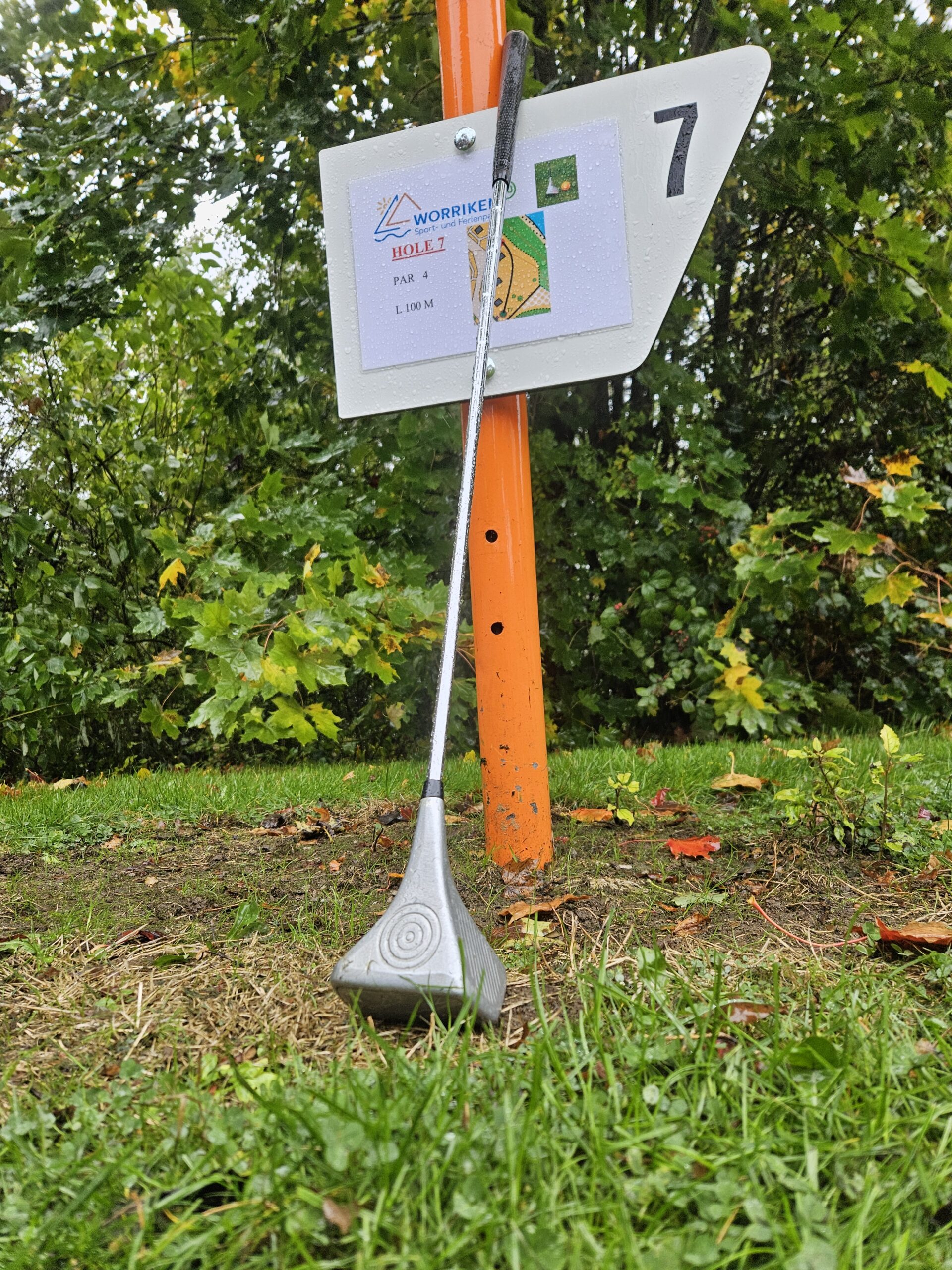 - Auf dem Parcours darf der Ball um 15 cm verlegt werden, ohne sich dem Loch zu nähern.