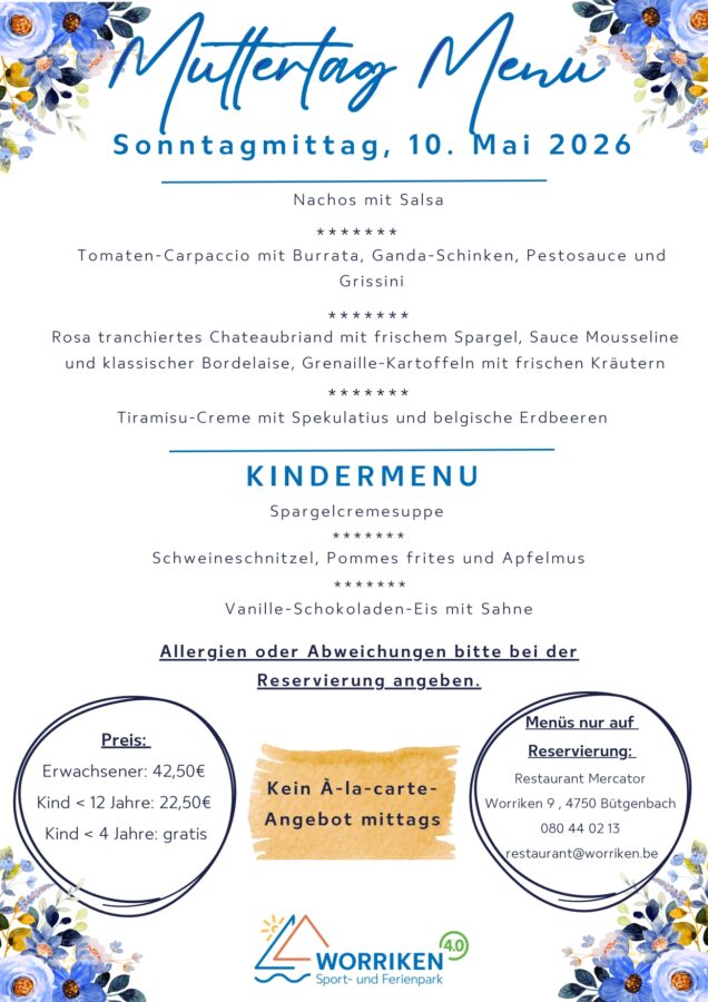 Enjoy Mother’s Day on 10 May 2026 at Restaurant Mercator in Worriken with a carefully prepared 3-course menu.