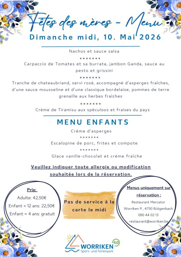 Attention : le 10 mai, aucun service à la carte ne sera proposé dans notre restaurant.