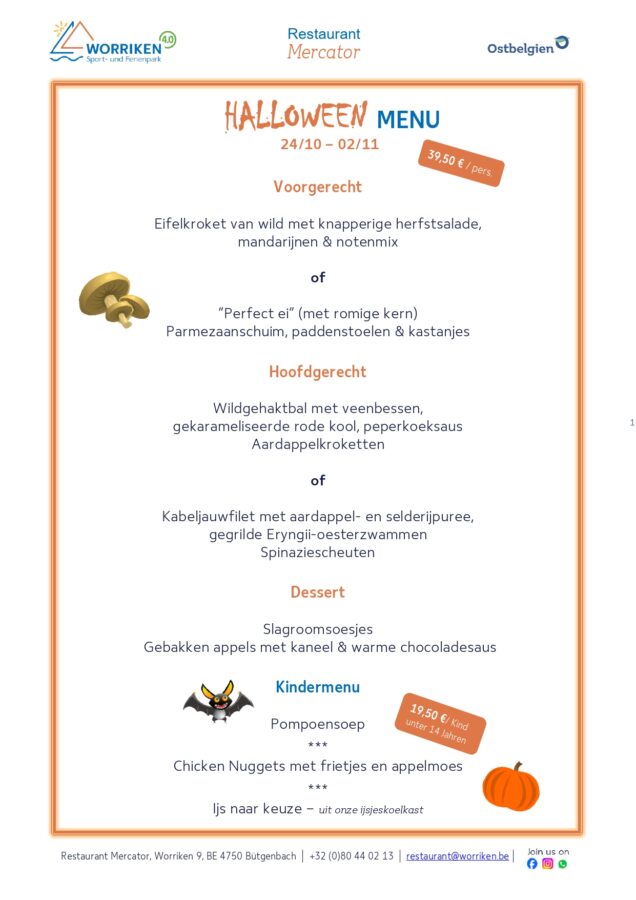 Je kunt à la carte eten of opteren voor ons dagmenu dat uit drie gangen bestaat. Gewoon een ijsje, een drankje of uitgebreid dineren: alles is mogelijk. Gasten waarderen het RAVeL-terras met uitzicht op de natuur en het touwenparcours vooral op zonnige dagen . Honden zijn welkom op ons grote terras, dat overigens net zoals het restaurant Mercator via een lift toegangelijk is voor personen met beperkte mobiliteit.