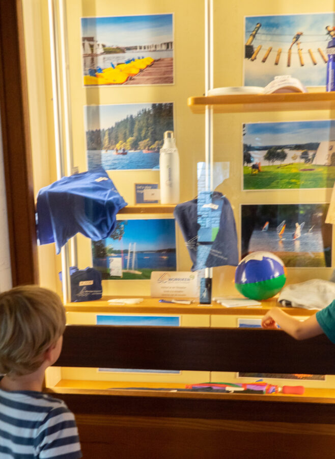 Die Souvenirs und Artikel können während der Öffnungszeiten der Rezeption gekauft werden.